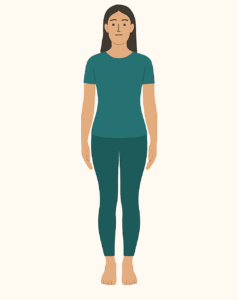 1. Stand tall with feet together or hip-width apart, arms at your sides.